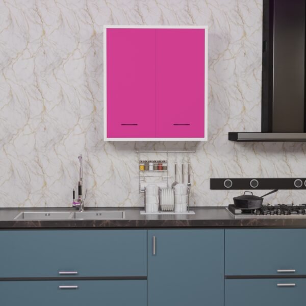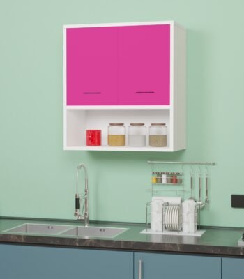 White and Pink 4 Door Wall Mounted Storage Cabinet with Adjustable Shelf | Engineered Wood Multi-Purpose Cabinet for Bedroom, Kitchen, Living Room & Office