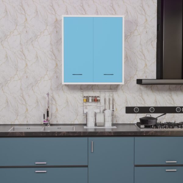 White and Sky Blue 2 Door Wall Mount Cabinet for with Open Shelf KCN-212