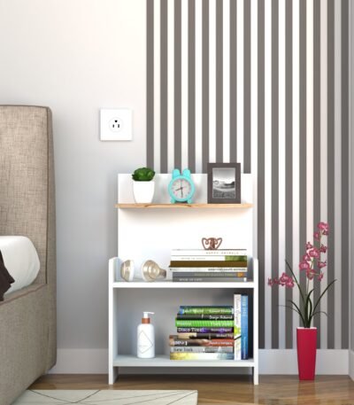 White & Asian Light Multi-Tier Bedside Furniture Table with Open Shelves