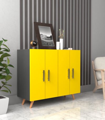 Yellow Multipurpose Use 4 Door with Mid Shelf Wall Mounted Cabinet for Home Kitchen | Office | Living Room | Color: Multi