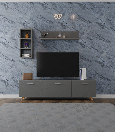 Grey & White Modern Wall-Mounted Entertainment Tv Unit with Floating Shelves, Decorative Display and Storage Compartments for Living Rooms and Media Spaces, Tv Up to 43″ TVs Color: Multi