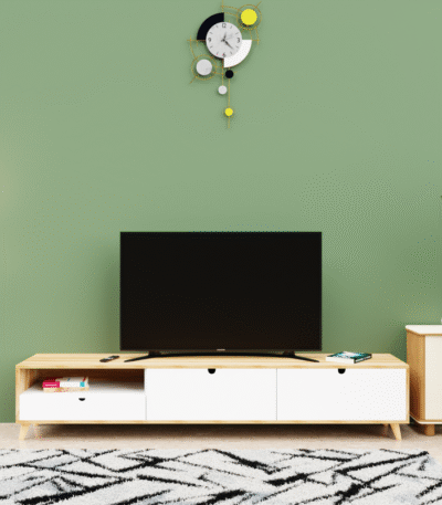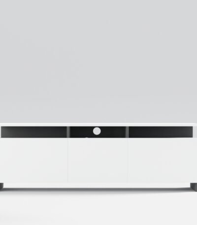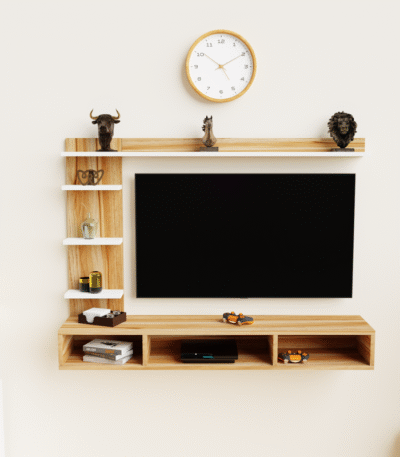 White & Asian Light Modern Berlin Tv Unit with Open Shelving, Hidden Storage Cabinets, Cable Management Hole – Ideal for Living Room, Bedroom, Media Entertainment, Color: Multi