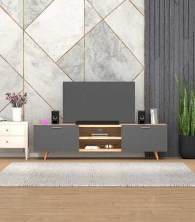 Grey & White Berlin TV Unit for 65-Inch TV | Engineered Wood Entertainment Console with Open & Closed Storage