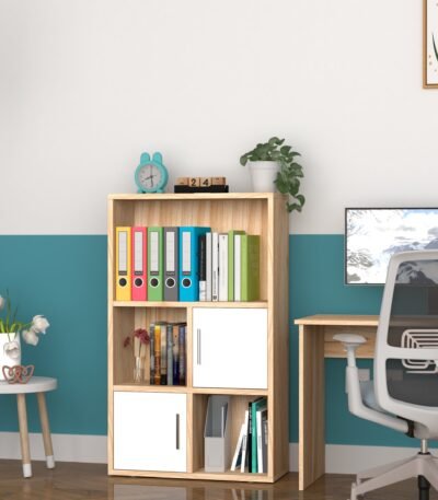 Grey & White Wooden Bookshelf with Doors – Premium Design and Idle Storage