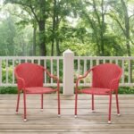 Red 4-Piece Outdoor Wicker Patio Chairs Set, Rattan Bistro Furniture with Armrests and Powder-Coated Steel Frame – Chairs for Balcony, Deck, or Backyard, Color: Multi