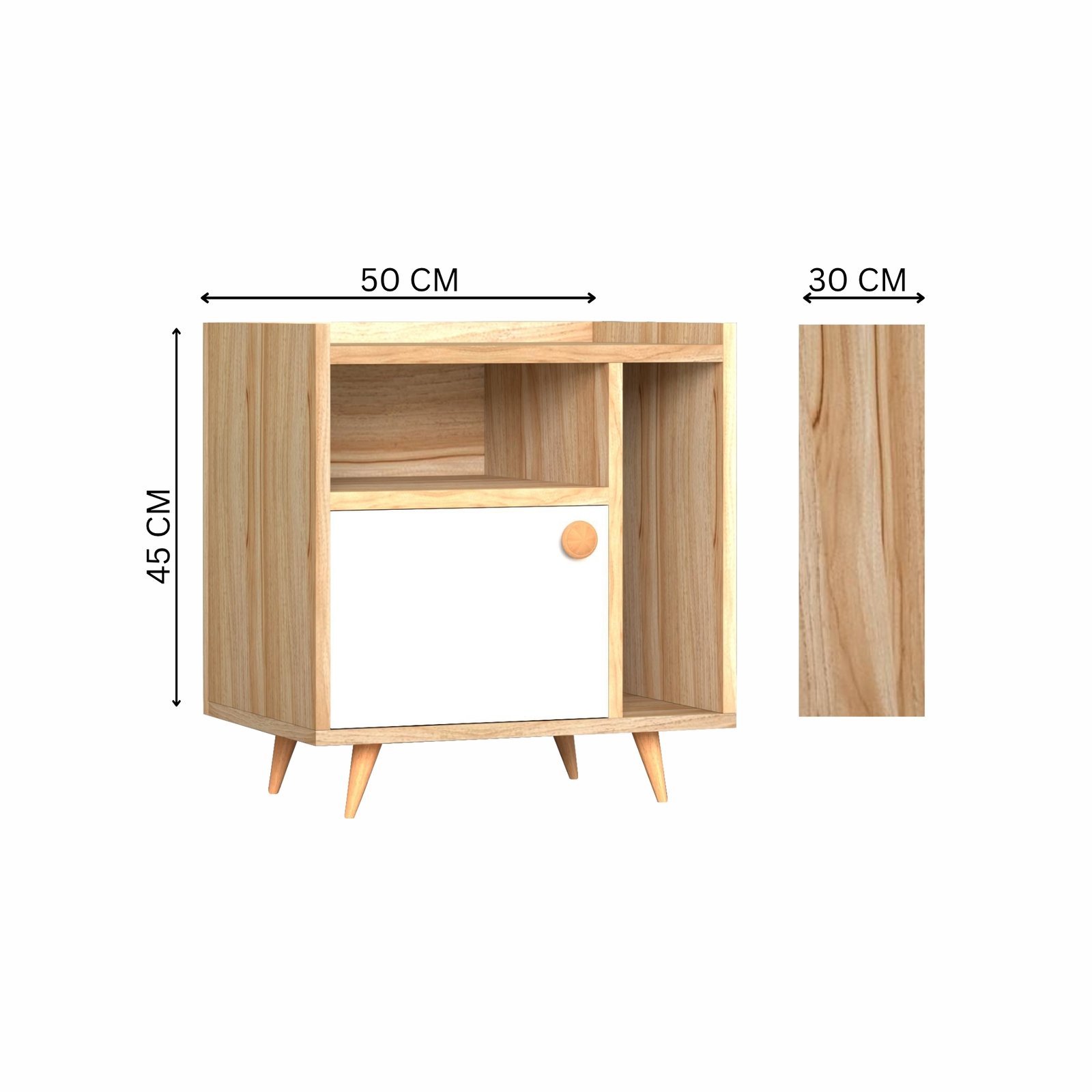 Give your room a stylish update with this mid-century modern nightstand. With clean lines, angled wooden legs, and a smooth natural oak finish, it brings a warm and timeless charm to any space. Whether in a bedroom, living room, or home office, it fits in beautifully with both modern and traditional décor.