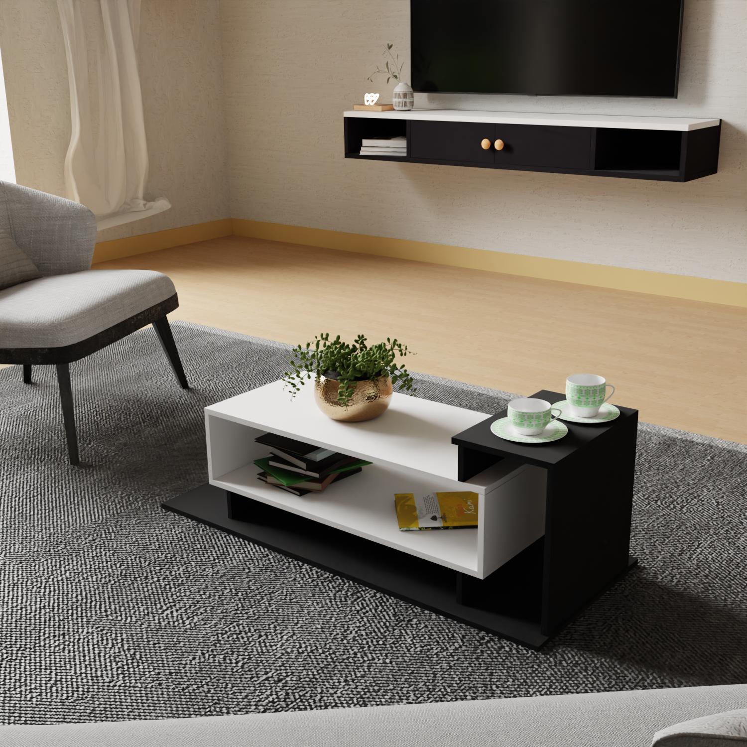 - Stylish Contemporary Design: Features a modern dual-tone finish in elegant white and grey, perfectly suited for minimalist, urban, or Scandinavian-style interiors, enhancing the overall décor of your living room space.