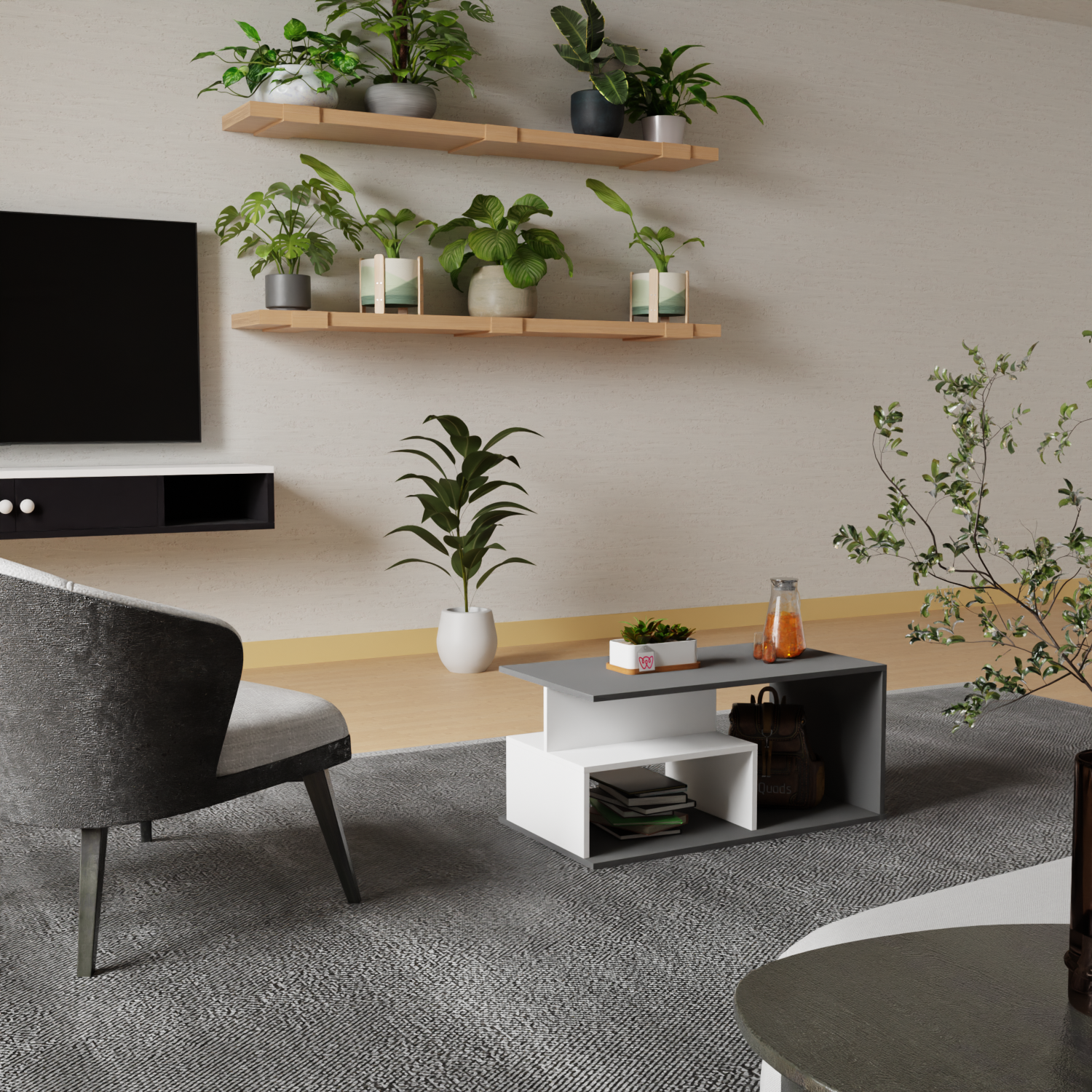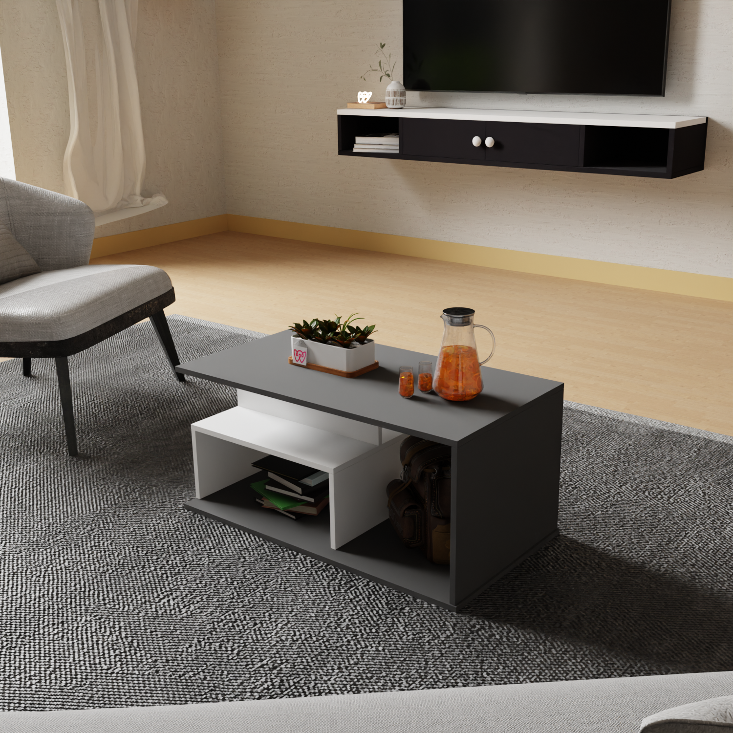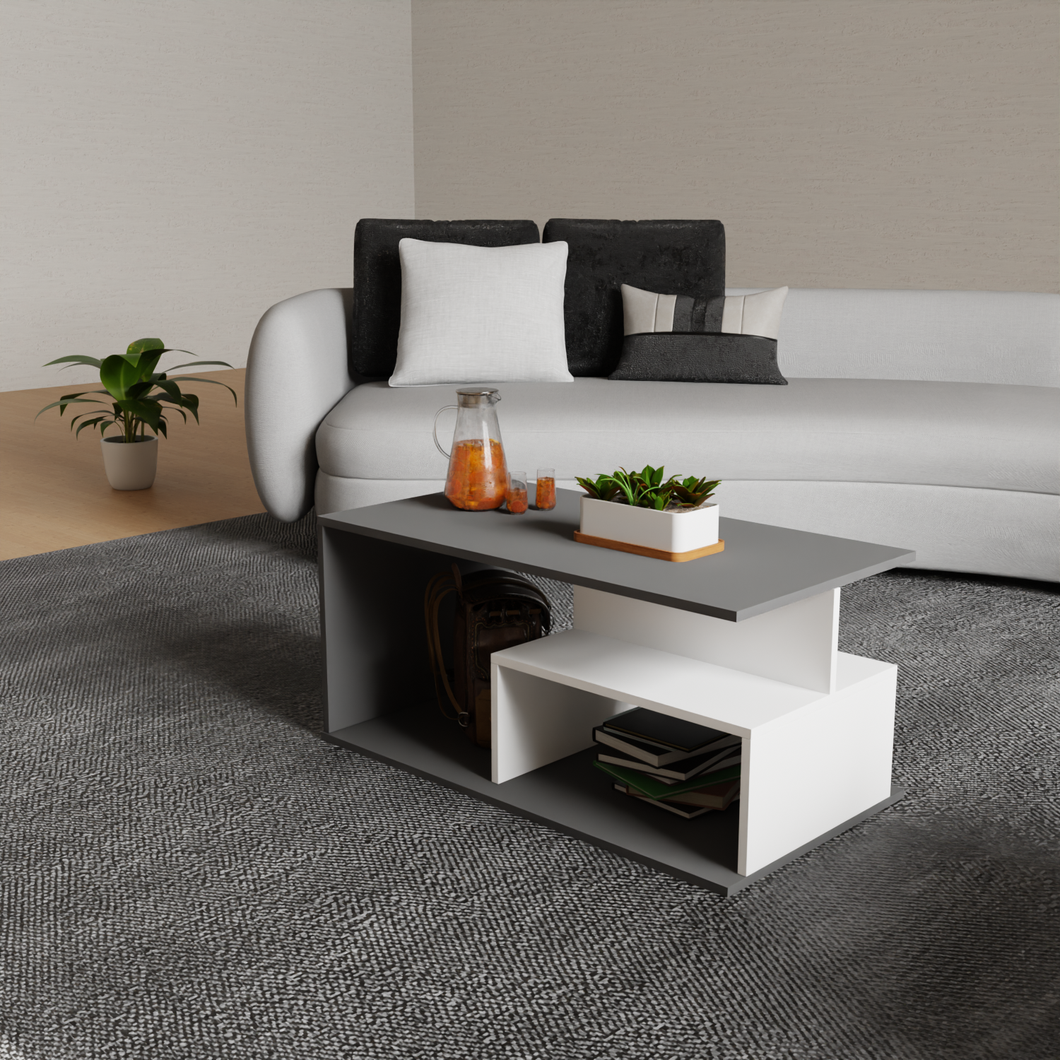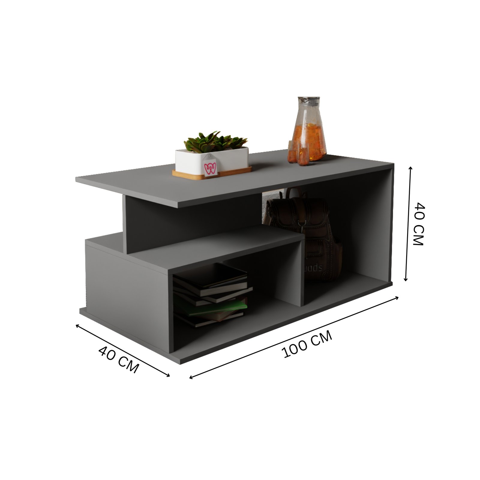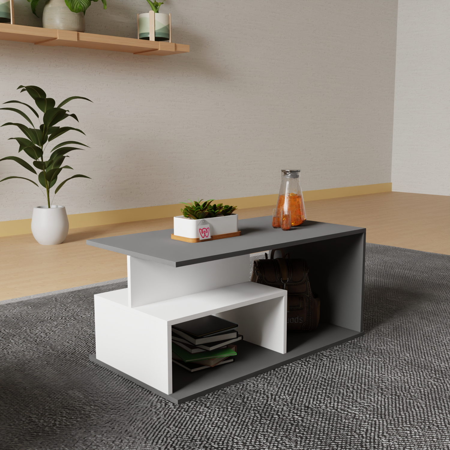 Add modern elegance and functionality to your space with this Multi-Tier Rectangular Coffee Table. Featuring a sleek grey and white matte finish, it offers stylish open storage perfect for organizing books, plants, and daily essentials in any contemporary living room.