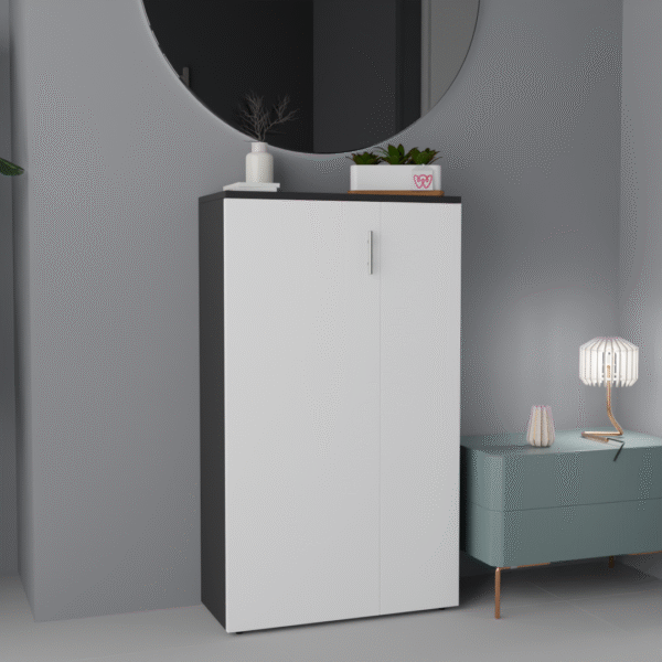 Stay organized with an upper open shelf for quick-access items, a middle compartment for books or devices, and a closed bottom section to store personal belongings discreetly. Each section is thoughtfully sized to suit your everyday storage needs.
