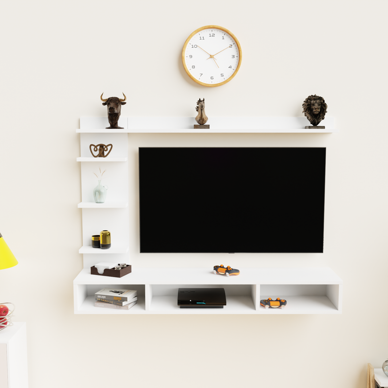 📺 Simple Installation with Wall Mounting: Designed for secure wall mounting, ensuring stability and safety while maintaining a seamless, floating look that adds architectural interest to your interior décor.