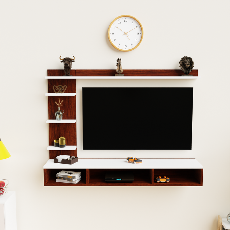 Modern Wall-Mounted Entertainment Tv Unit with Floating Shelves, Decorative Display and Storage Compartments for Living Rooms and Media Spaces, Tv Up to 43″ TVs Color: Multi