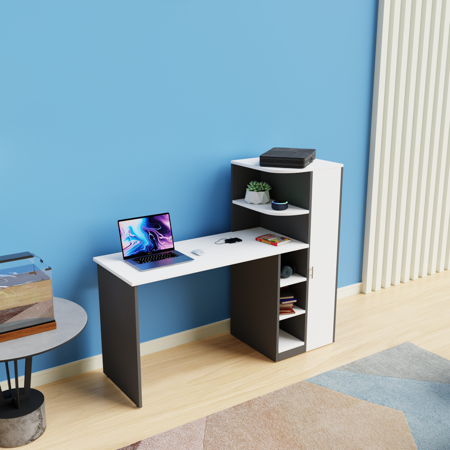 Unlike bulkier furniture, this desk features a vertical side unit that adds storage without taking up extra floor space. Therefore, it’s ideal for compact rooms, shared spaces, or apartments.Highly Versatile