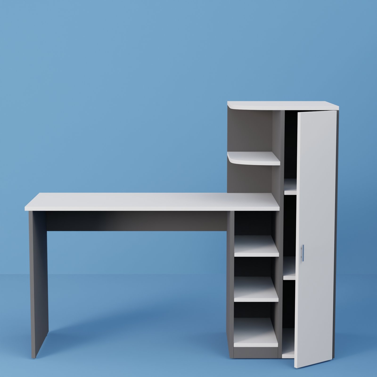 It includes multiple open shelves for books, décor, or office supplies. In addition, a closed cabinet provides concealed storage, helping you stay neat and organized.Compact & Efficient