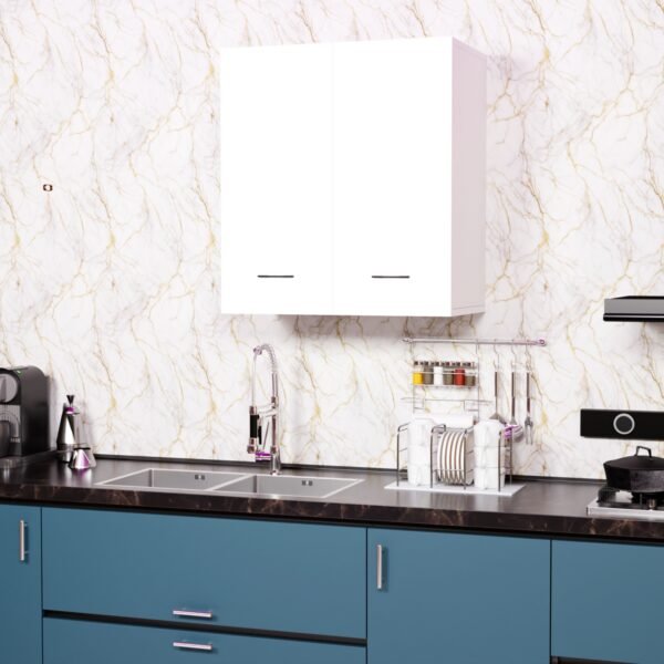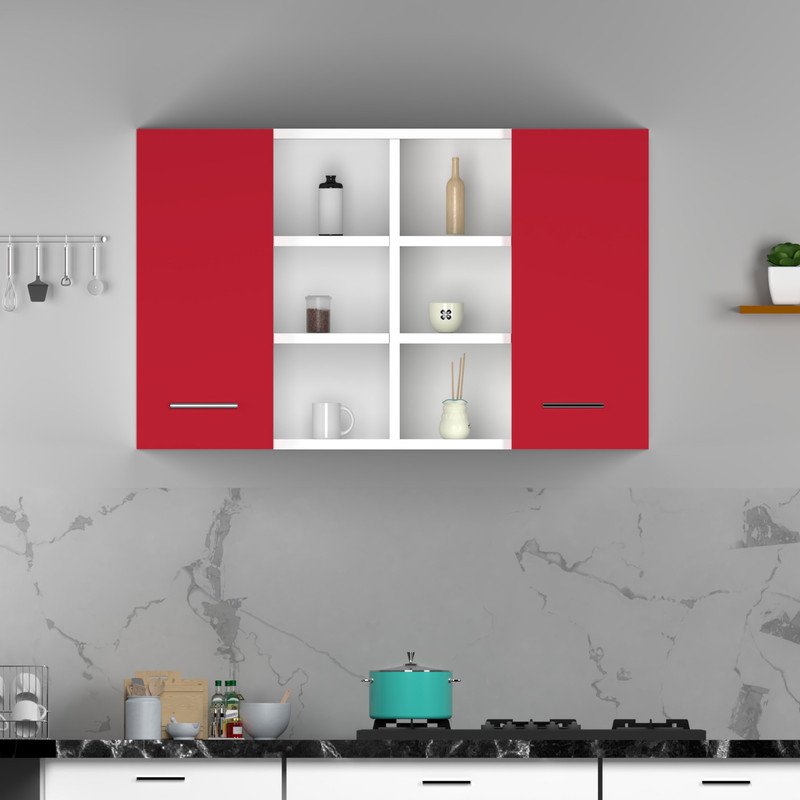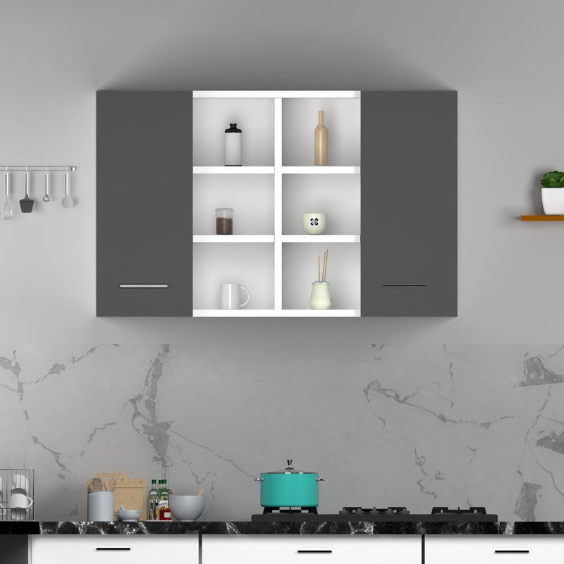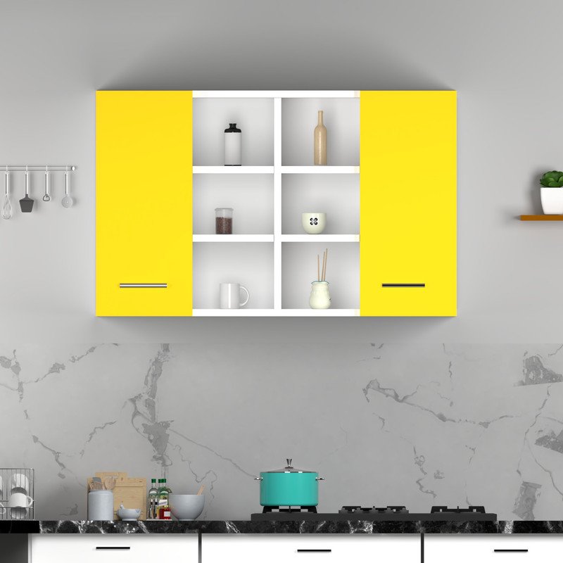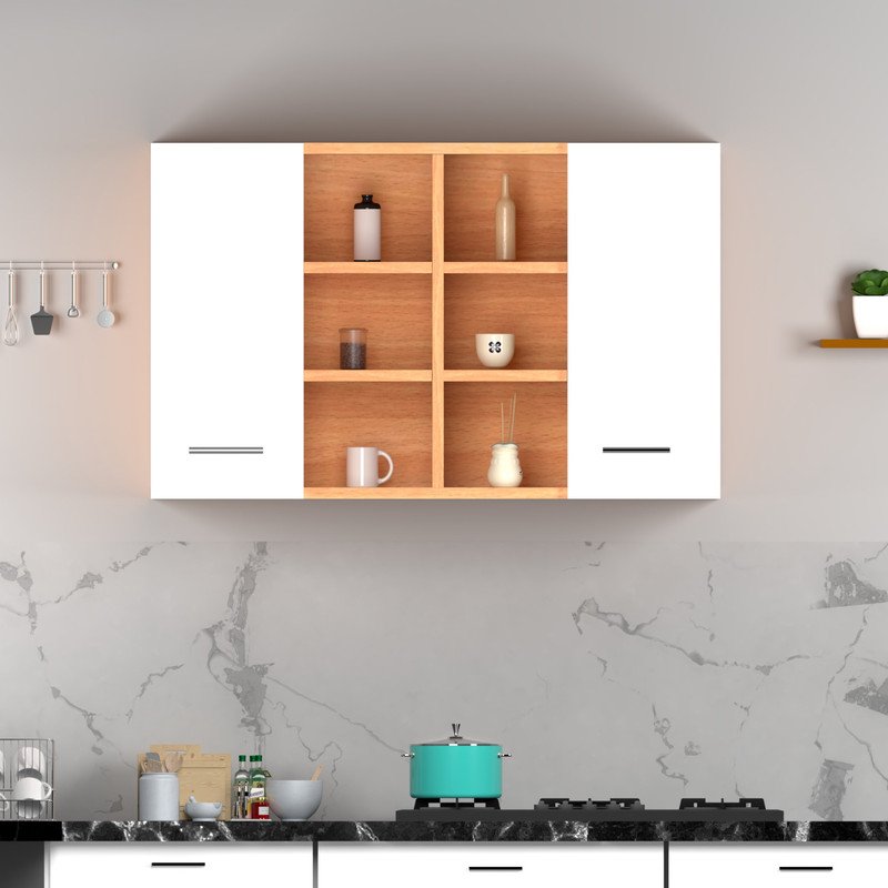 Stylish Dual-Tone Design: This wall-mounted kitchen cabinet features a sleek blend of natural wood and white panels. It adds a modern and sophisticated touch to any modular kitchen while blending easily with different interior styles.