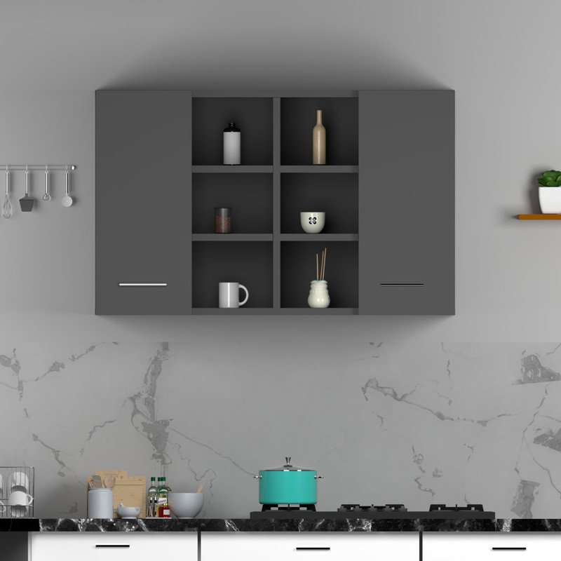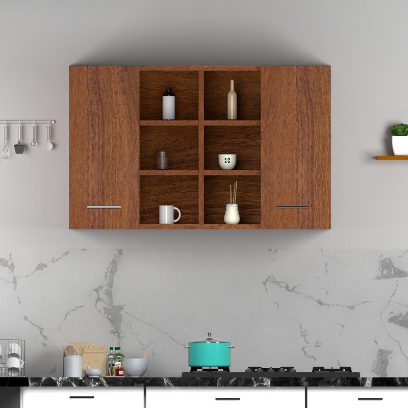 Wall Mounted Wooden Kitchen Cabinet by Spyder Group- A premium furniture piece that stores while standing out with its stylish appearance. Get style and storage at one place with premium wall mounted cabinet having two doors and multiple open shelves. Featuring the rich beach color, the furniture elevates the look of the space and offer careful storage.