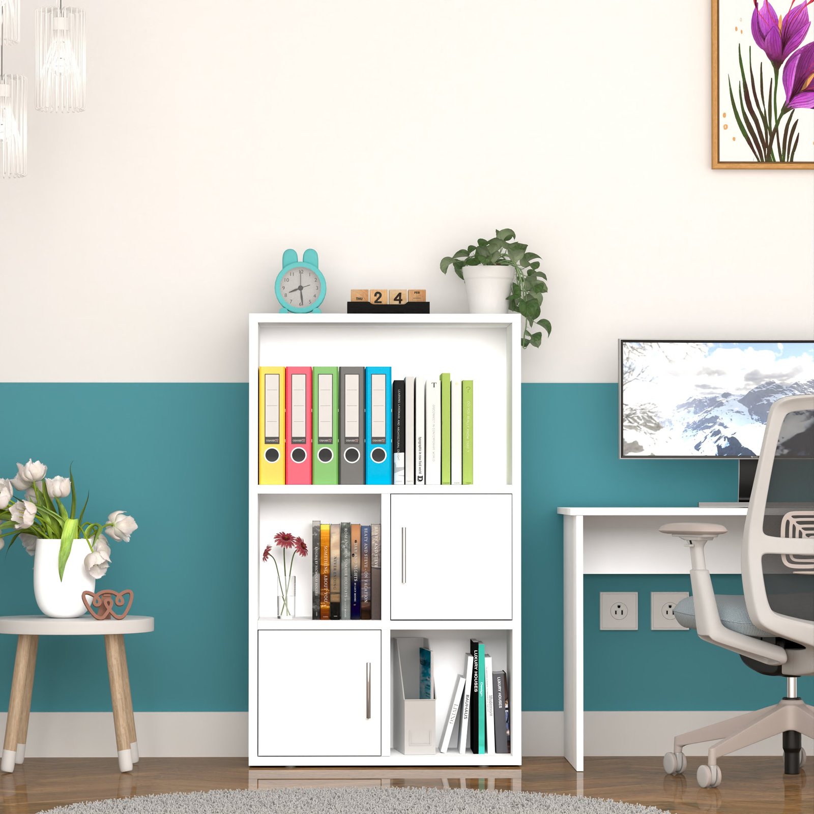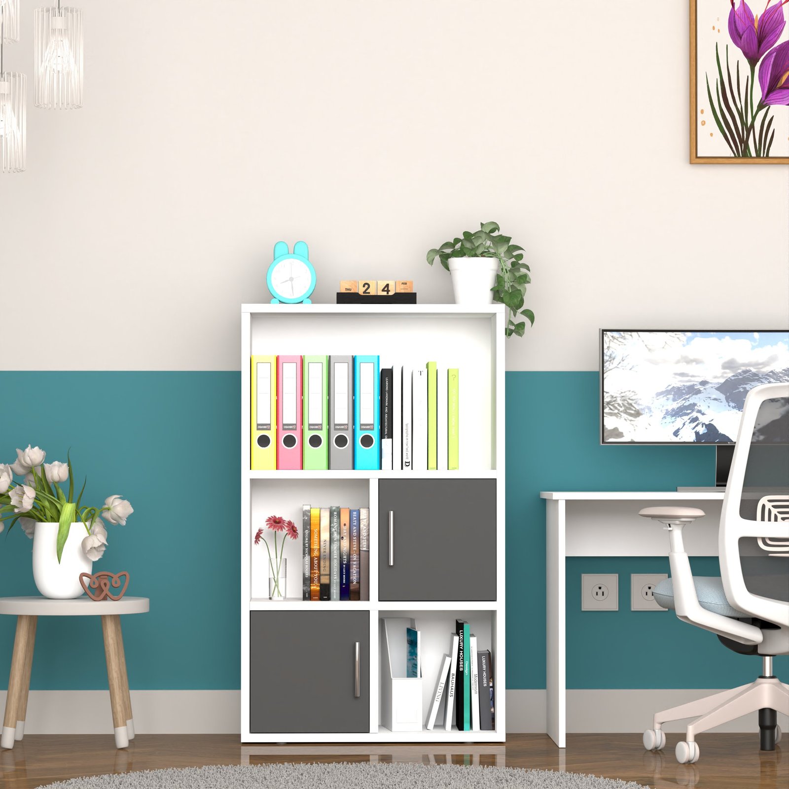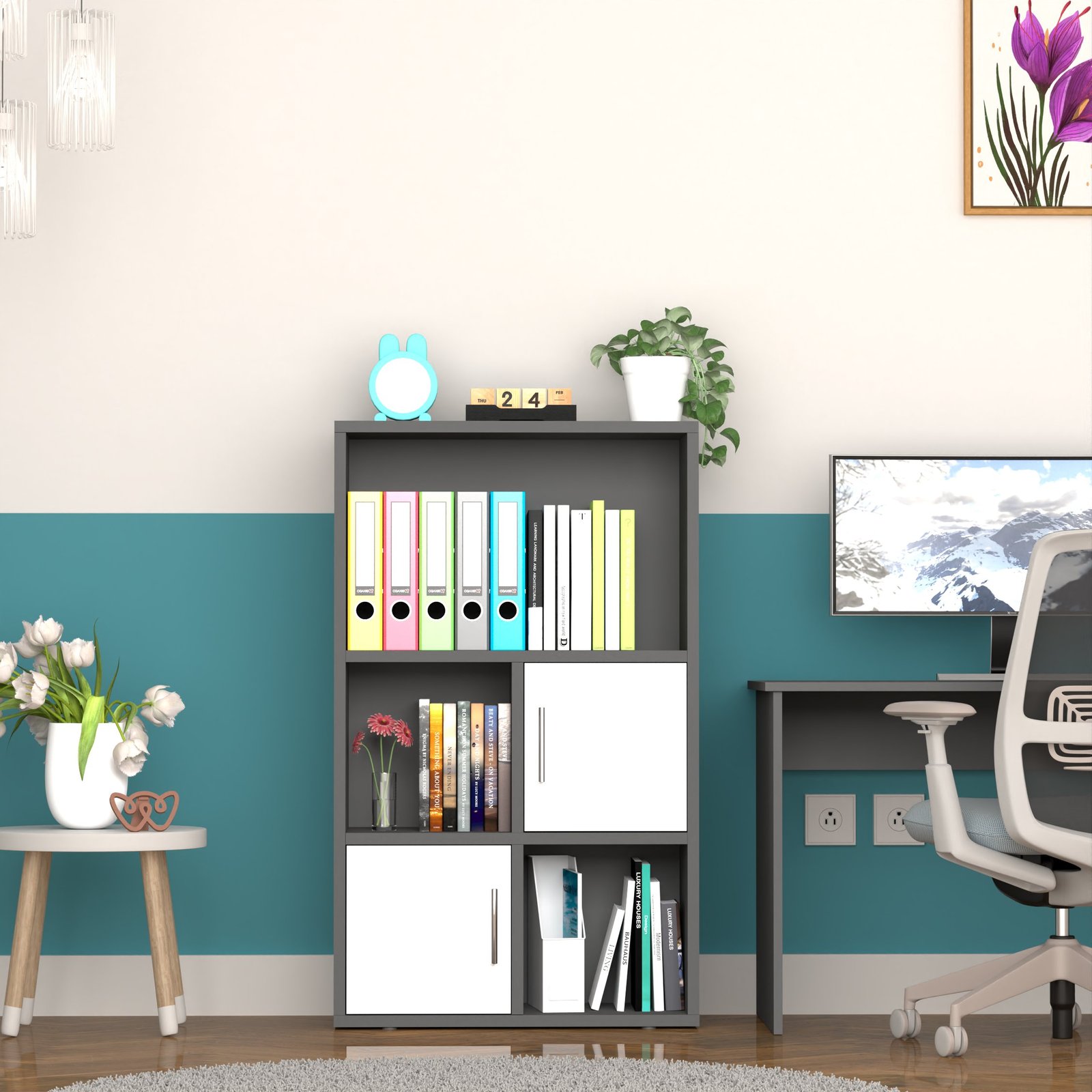 With two open shelves and two closed-door cabinets, this bookshelf offers both display and concealment. Show off books, plants, or decor, while storing electronics, files, or supplies neatly out of sight.